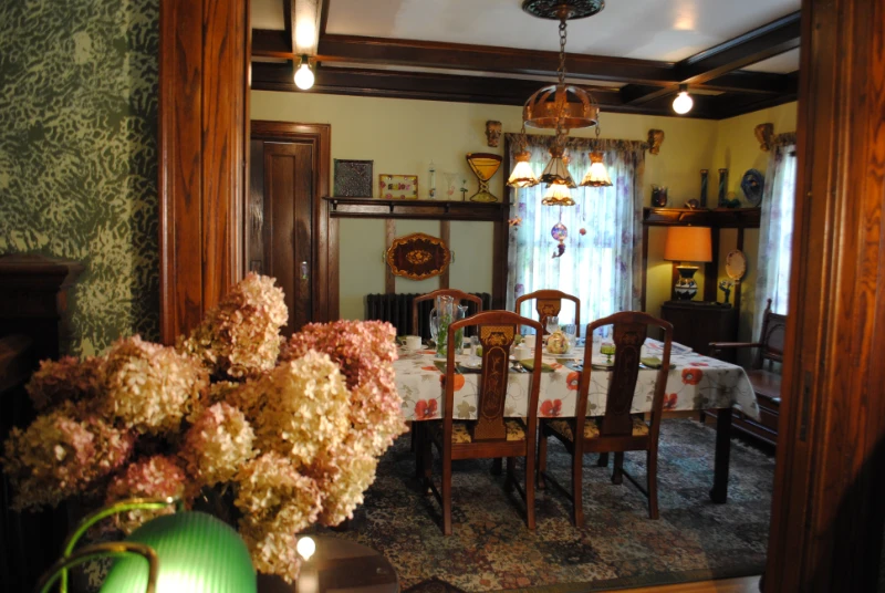 Complimentary breakfast is served every morning when you want it. You may find yourself breakfasting on the porch on a sunny summer morning or starting your winter day next to the fire in the living room.